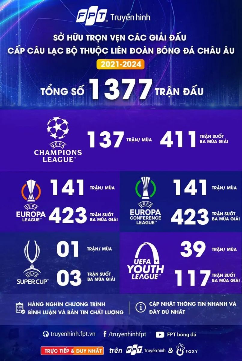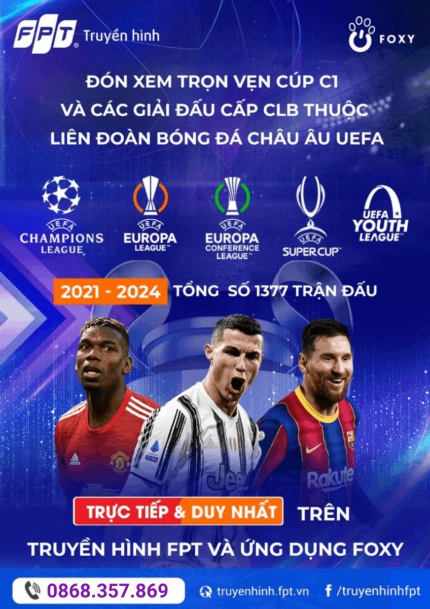 Đón xem trực tiếp và duy nhất Cúp C1 Châu Âu UEFA Champions League cùng các giải đấu cấp CLB thuộc Liên đoàn Bóng đá Châu Âu (UEFA) trong 3 mùa giải liên tiếp trên Truyền hình FPT!